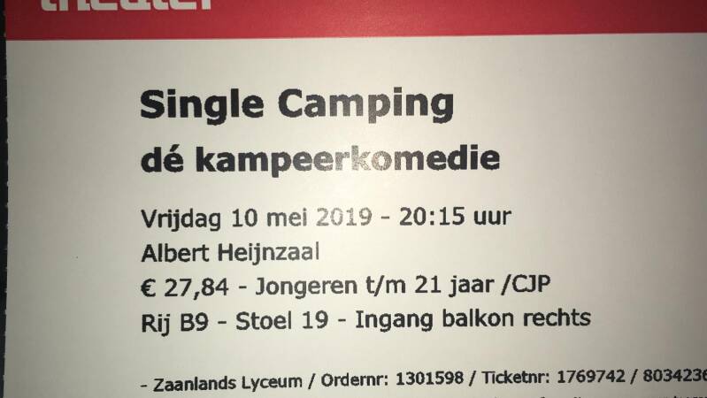 De voorstelling waar ik heen geweest ben heet singlecamping. Het was een musical in Zaandam in het Zaantheater. De musical was op tien mei van half 8 tot ongeveer half 11 met een pauze ertussen.